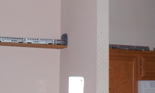 I'll post a photo of my own setup when I have time. To answer the immediate question, I used brass L brackets and hung the vertical part upwards instead of downwards. The bracket fits into a little notch cut in the inner edge of the shelf to allow the shelf to go flush against the wall.